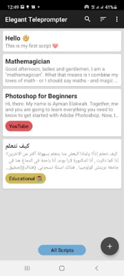Elegant Teleprompter förvandlar ditt sätt att presentera och kommunicera genom att erbjuda en smidig och professionell lösning för manusläsning. Denna innovativa app är designad för att eliminera stressen med att memorera text och säkerställa en flytande leverans, oavsett om du håller en presentation, spelar in video eller framträder live. En av dess mest banbrytande funktioner är möjligheten att använda den i ett "Flytande Fönster". Detta innebär att du kan ha ditt rullande manus synligt över vilken annan app som helst på din enhet, vilket öppnar upp för oöverträffad flexibilitet och möjliggör sömlös multitasking.