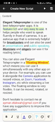 Elegant Teleprompter Pro hjälper dig att tala tryggt framför kameran utan att memorera manus. Den visar rullande text, kompatibel med fysiska teleprompter-enheter eller som ett flytande fönster med valfri kamera-app. Perfekt för YouTubers, TV-personligheter, live-streamers och offentliga talare.