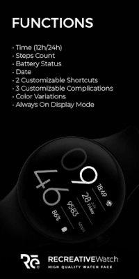 Anpassa din handledsenhet för att perfekt spegla din unika stil och informationsbehov. Genom att enkelt trycka och hålla på skärmen kan du enkelt navigera till anpassningsalternativen. Här kan du välja mellan en palett av färgvariationer och skräddarsy två snabbgenvägar samt tre flexibla komplikationsfält, så att du alltid har den viktigaste datan nära till hands. Urtavlan stödjer Always On Display (AOD) med möjlighet att ändra både färger och lägen, vilket säkerställer en konstant och diskret översikt. Den kompletterande mobilappen fungerar uteslutande som ett verktyg för att underlätta upptäckten och konfigureringen av urtavlan på din Wear OS-enhet, och är helt fri från annonser.
