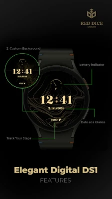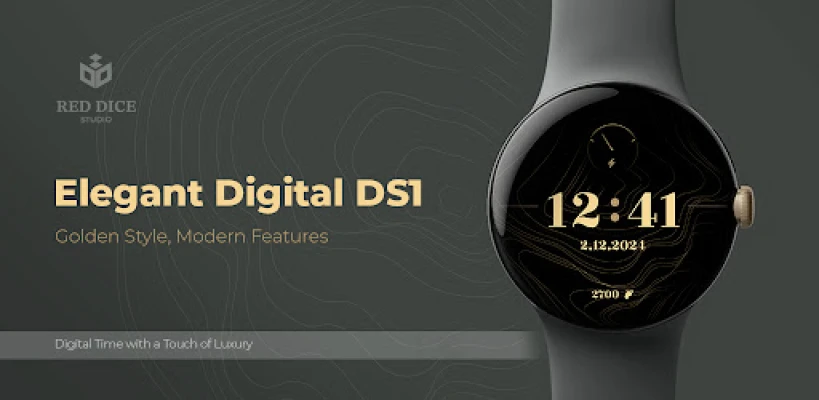 Reddice Elegant Digital DS1 är en lyxig urtavla för Wear OS från ReddiceStudio. Denna eleganta urtavla kombinerar en raffinerad guldfärg med viktiga funktioner som digital klocka, stegräknare och datumvisning. Upplev stil och funktionalitet som förhöjer din smartklocka.