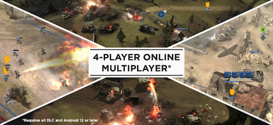 Utöver den fängslande enspelarkampanjen, bjuder Company of Heroes in dig till intensiva online-skärmytslingar för upp till fyra spelare. För att delta i dessa multiplayer-strider krävs att du har Android 12 eller senare samt alla DLC-paket. Utöka din krigföring med expansionerna Opposing Fronts och Tales of Valor, tillgängliga via köp i appen. Opposing Fronts låter dig leda den brittiska 2:a armén och den tyska Panzer Elite genom egna fullängdskampanjer, samt i Skärmytslingsläge. Tales of Valor ger dig tre nya minikampanjer med unika perspektiv på konflikten i Normandie, och tillför nio nya fordon till Skärmytslingsläget.