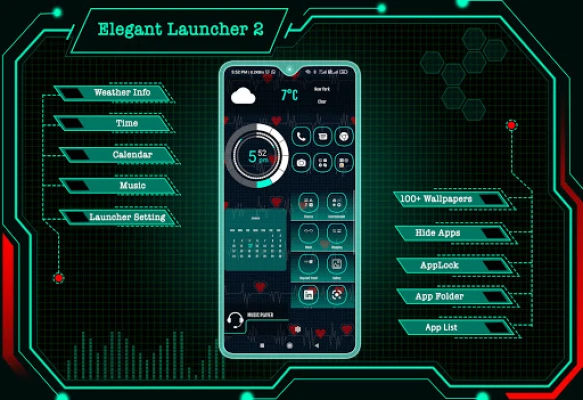 Elegant Launcher 2 förvandlar din Android-telefon med en futuristisk stil. Upptäck kraftfulla funktioner som AppLock, HideApp, Hitech Wallpaper, mappar och teman för att ge din enhet ett nästa generations utseende. Anpassa din upplevelse smidigt och säkert.