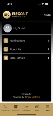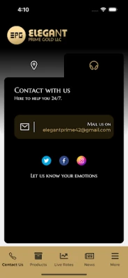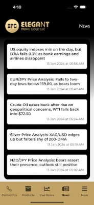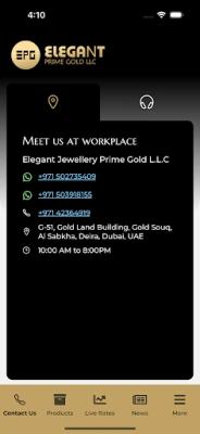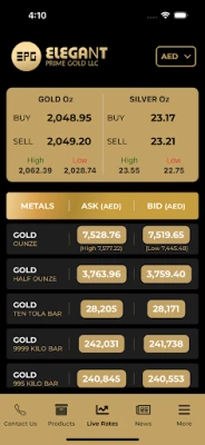 Elegant Prime Gold LLC:s starka grundprinciper reflekteras i deras dedikerade kundservice, som alltid strävar efter absolut kundnöjdhet genom sitt utbud av högkvalitativa guldprodukter. Företaget hanterar alla typer av guldtransaktioner, både försäljning och inköp, och garanterar de bästa marknadspriserna vid försäljning av nytt guld samt ett rättvist värde för kundens egna guldsmycken vid försäljning. Och för att säkerställa att du alltid har den support du behöver, ger vår app dig snabb och direkt tillgång till Elegant Prime Gold LLC:s kontaktuppgifter. När du överväger guld som investering, tänk Elegant Prime Gold!