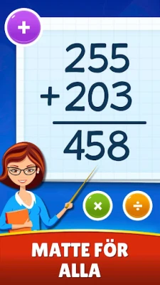 Söker du efter en engagerande matematikupplevelse för ditt barn i förskoleålder upp till sjätte klass, eller till och med för tonåringar och vuxna som vill vässa sina färdigheter? Denna app är skräddarsydd för att omvandla sifferrädsla till sifferglädje. Med ett brett spektrum av övningar, från enkla plus- och minuslekar till komplexa multiplikations- och divisionsutmaningar, finns det alltid en passande nivå. Den unika "Lär dig"-funktionen guidar användaren steg för steg genom svåra problem, vilket gör det enkelt att förstå även de mest kluriga utmaningarna i en barnvänlig och distraheringsfri miljö.
