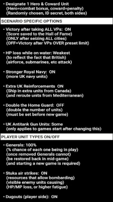 Varje omgång i denna simulering garanterar en unik upplevelse tack vare inbyggd variation och avancerad AI-teknologi. Anpassa din krigföring med ett brett utbud av inställningar: justera svårighetsgraden, ändra storleken på hex-rutorna, animationshastighet, välj ikonuppsättningar för enheter (NATO eller REAL) och städer, och bestäm vad som ska visas på kartan. Du kan till och med stänga av popup-dialoger och ge britterna extra förstärkningar för en ännu större utmaning. För dig som älskar att rulla tärningar och kommendera kartongdivisioner, erbjuder denna serie den djupa, historiska wargaming-känslan utan den tidskrävande förberedelsen. Engagera dig i ett av historiens mest intressanta "vad-om" scenarion, ett som faktiskt simulerades av verkliga militära befälhavare redan 1974.
