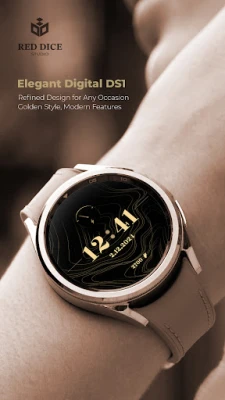 Reddice Elegant Digital DS1 är en lyxig urtavla för Wear OS från ReddiceStudio. Denna eleganta urtavla kombinerar en raffinerad guldfärg med viktiga funktioner som digital klocka, stegräknare och datumvisning. Upplev stil och funktionalitet som förhöjer din smartklocka.