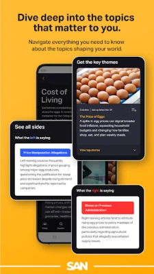 Upptäck SAN, din nya destination för omfattande och balanserad nyhetsbevakning. Med SAN kan du enkelt följa de senaste nyhetsuppdateringarna och fördjupa dig i originella videopoddar, allt samlat i en personlig kö. Läs och lyssna på engagerande berättelser var du än befinner dig, så att du alltid håller dig informerad och uppdaterad med det som betyder mest för dig.